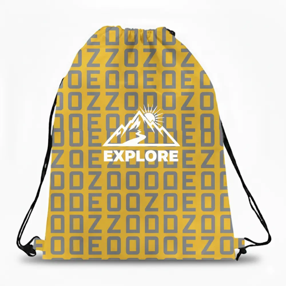 A large-capacity premium drawstring bag featuring vibrant, full-color edge-to-edge dye sublimation printing for photorealistic designs. Made from durable 210D fabric with a reinforced strap ear bottom. Perfect for high-impact branding, retail, and fashion-forward promotions.