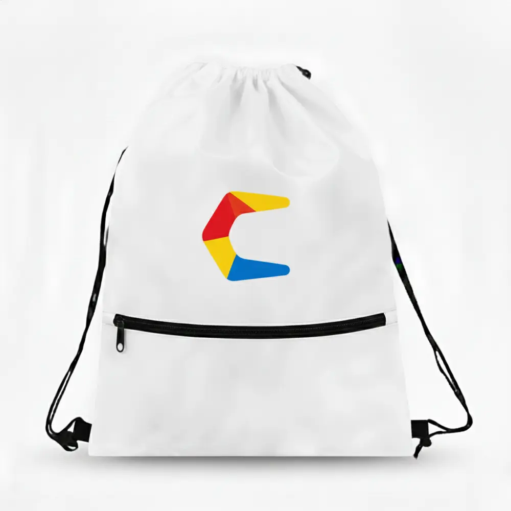 A highly functional and visually stunning drawstring bag featuring full-color dye sublimation printing and a secure external zipper pocket. Combines the limitless design potential of all-over sublimation with practical organization for a premium promotional or retail bag.