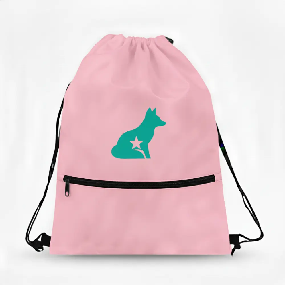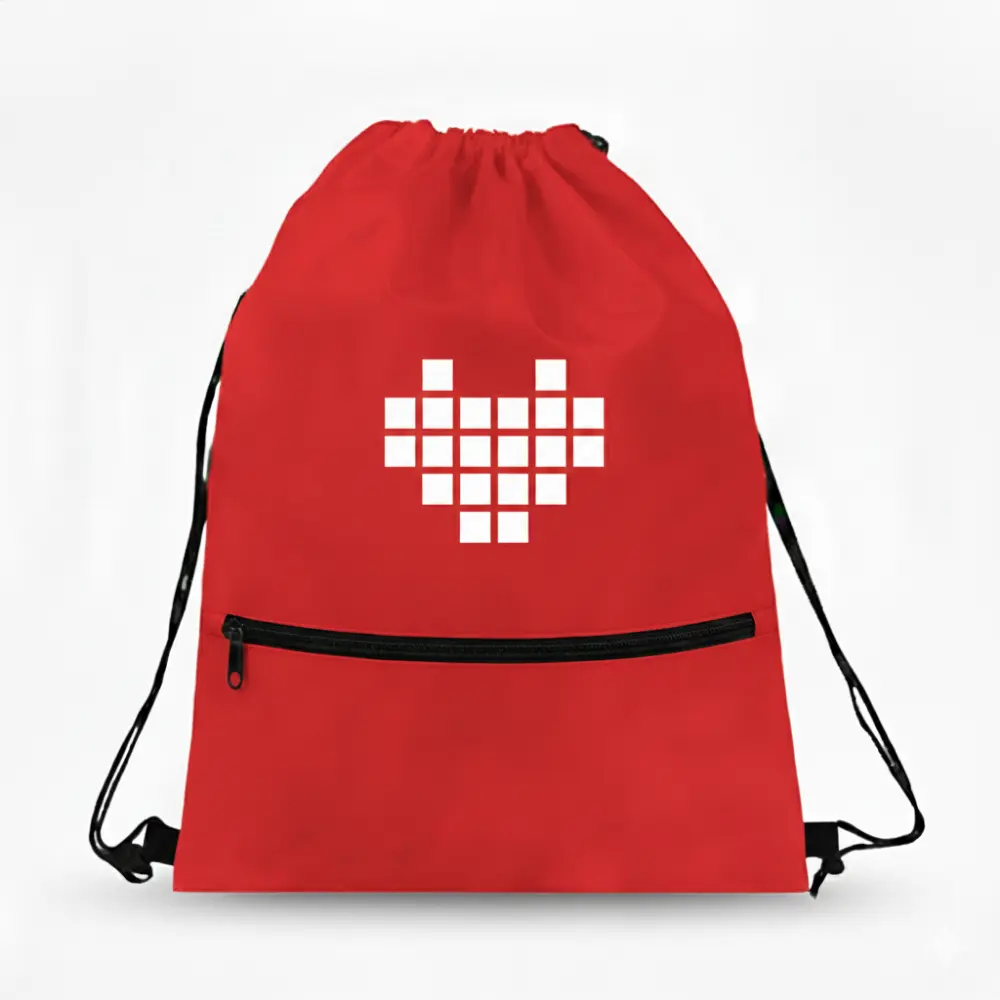 Single Color Screen Printed Drawstring Bag with Zipper Pocket