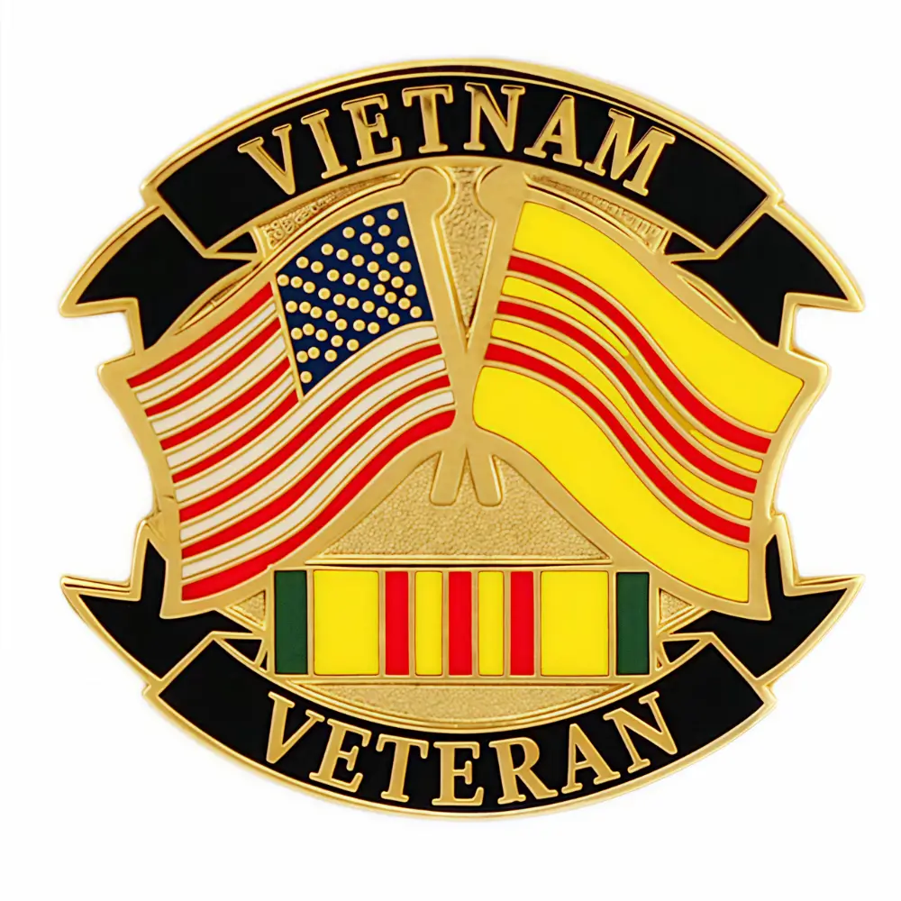 A custom die struck lapel pin made from iron, measuring 2" (5.1cm). Produced in Bangladesh with shipping and tariffs included to USA. Perfect for corporate events, recognition awards, promotional giveaways, and commemorative collections.
