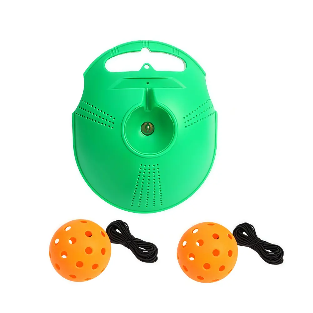 A versatile pickleball rebound trainer featuring a plastic pedestal (24cm x 20cm x 6cm), two practice balls, and two elastic ropes. Perfect for extended solo practice, alternating shot training, and comprehensive skill development with customizable screen printing options.