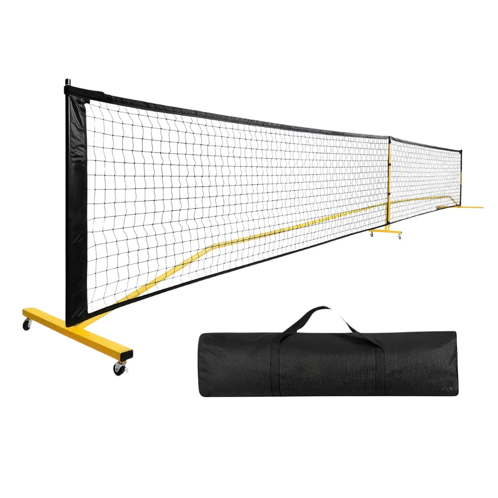 A complete portable pickleball net set featuring a 22FT regulation-size net, durable iron stand with 6 wheels for easy mobility, and 600D handle carry bag. Perfect for portable court setup, practice sessions, and recreational play with customizable screen printing options on net edges and bag.