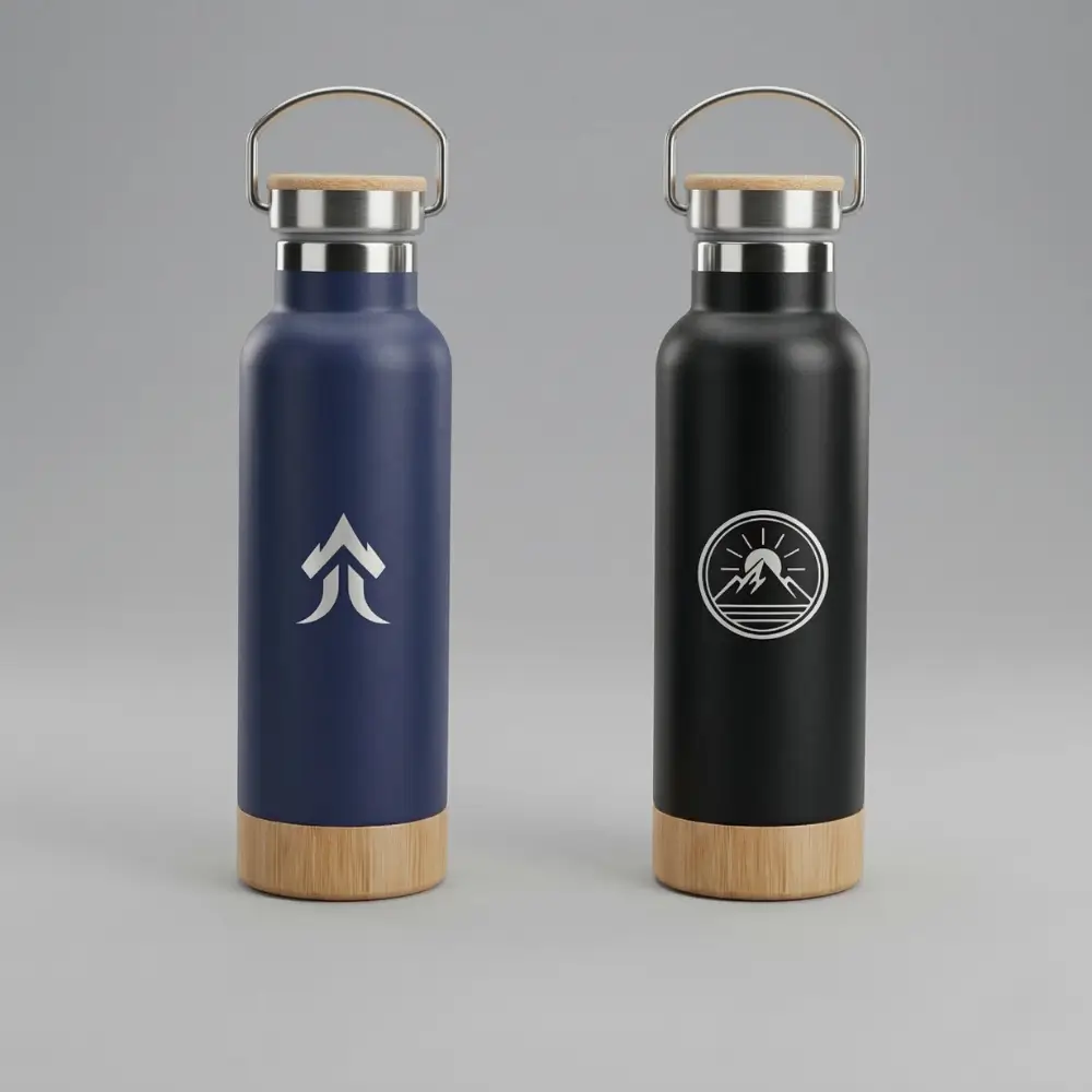 A premium 17 oz stainless steel water bottle featuring a unique wood-style base. Crafted from high-quality kitchen-grade stainless steel (304 inside, 201 outside), it keeps beverages hot or cold for up to 24 hours. Perfect for corporate gifts, promotional events, and outdoor enthusiasts.