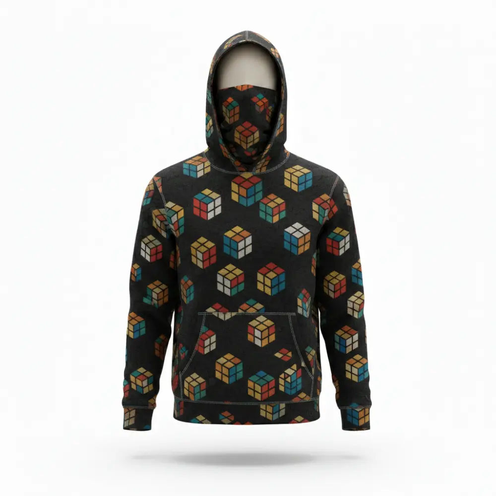 A lightweight pullover hoodie featuring vibrant, all-over sublimation printing, complete with a matching bandana/gaiter. Made from 250gsm loopback fabric, it's a complete, coordinated set for teams and casual wear.