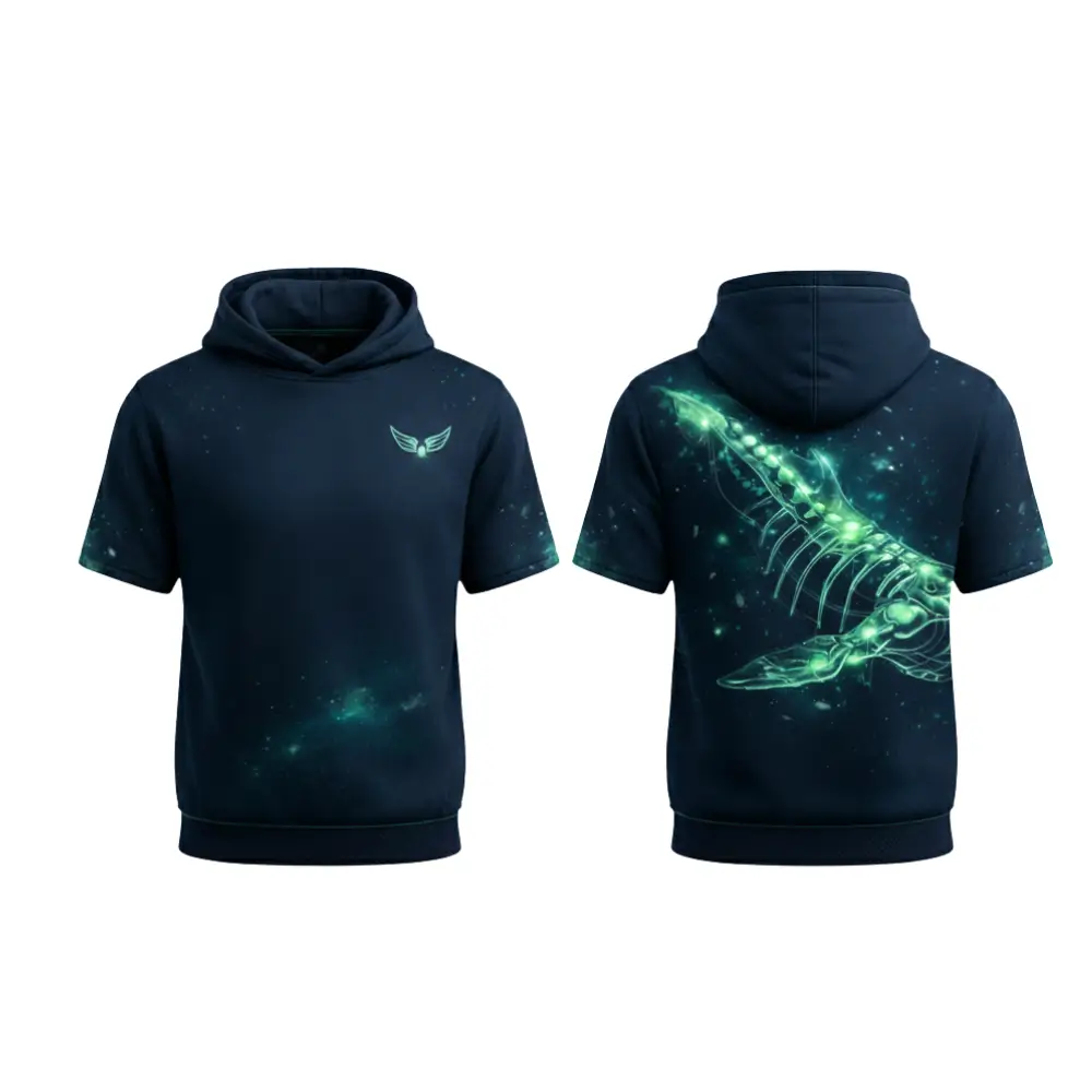A unique and stylish short sleeve hoodie suitable for both unisex and kids, crafted from 250gsm hoodie fabric with looped pile (96% polyester + 4% spandex). Features a comfortable hood, set-in short sleeves, and a practical kangaroo pocket. Perfect for sports, streetwear, or team uniforms with vibrant edge-to-edge sublimation printing.