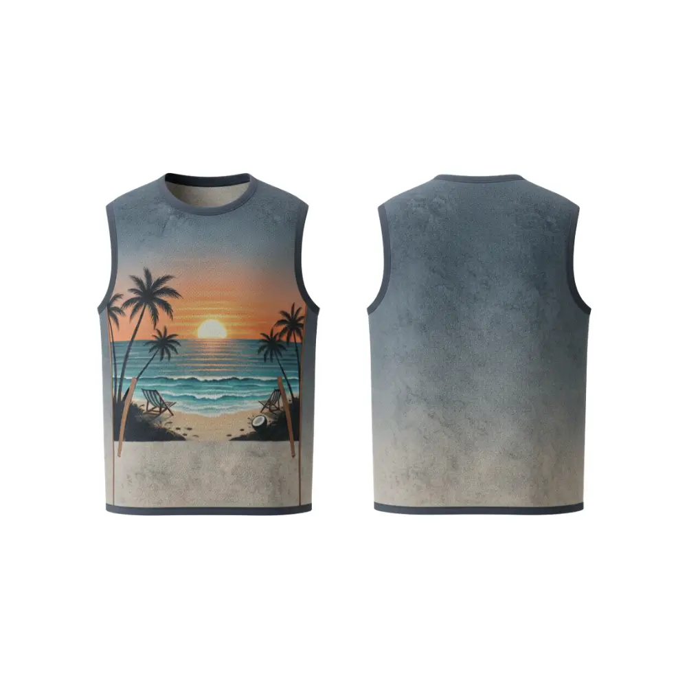 A comfortable and versatile sweat tank suitable for both unisex and kids, crafted from 250gsm hoodie fabric with looped pile (96% polyester + 4% spandex). Features a classic crew neck with binding on the back neck, perfect for sports, training, or casual wear with vibrant edge-to-edge sublimation printing.