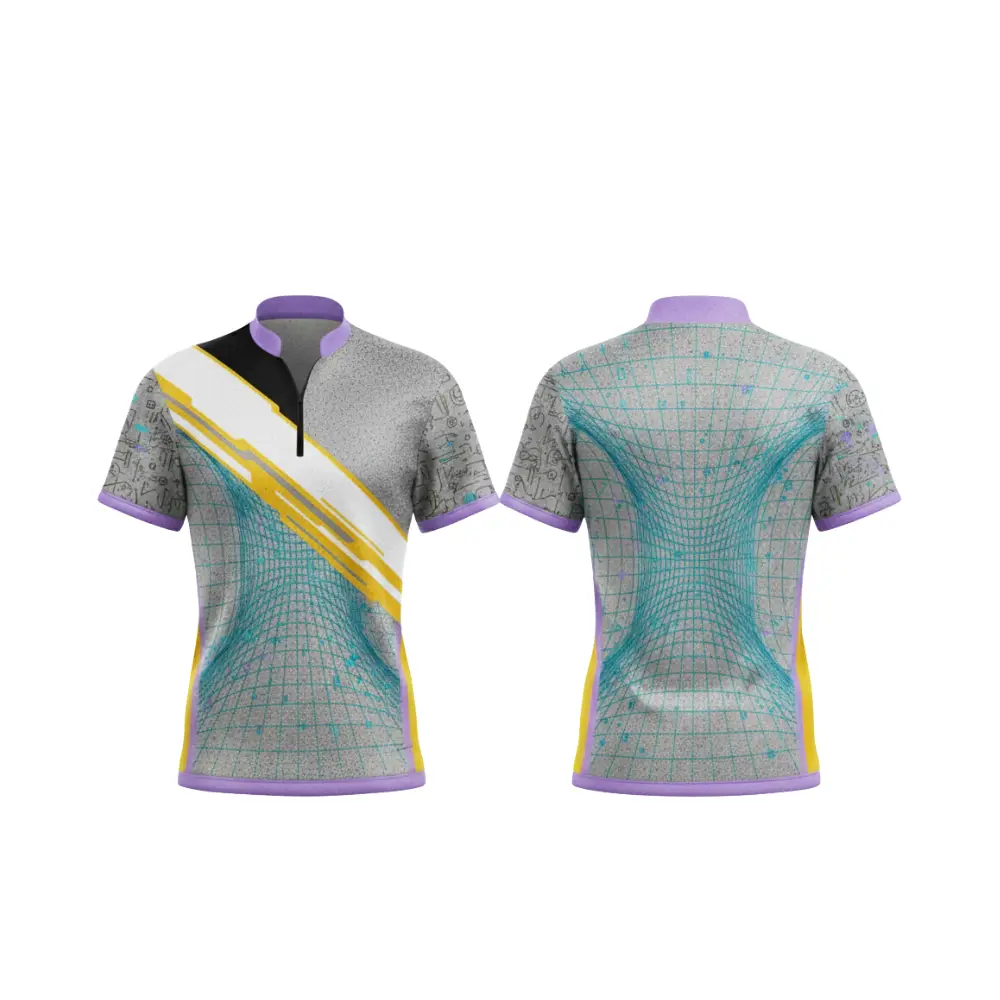 A sleek high neck quarter-zip top featuring vibrant, all-over sublimation printing on 75D pique fabric. The modern high neck design and short sleeves offer a contemporary athletic look for training and casual wear.