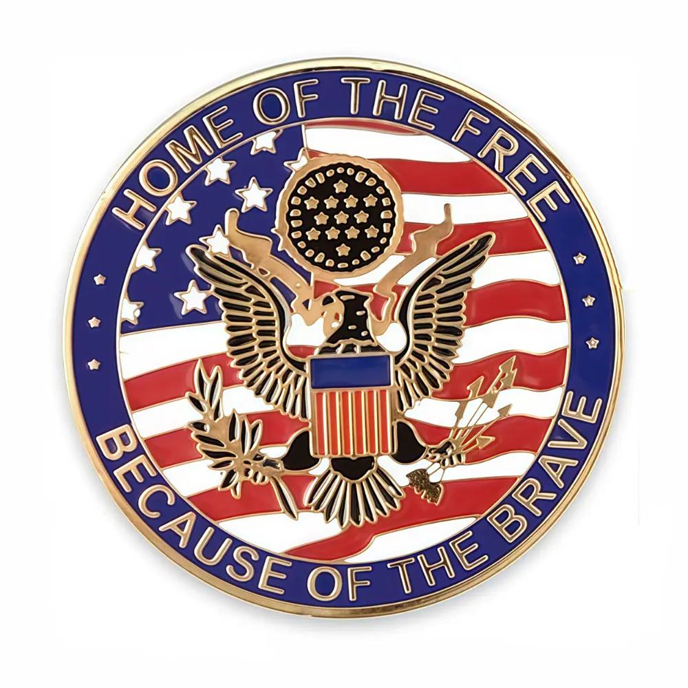 Primary decoration is achieved through the Hard Enamel Process, with smooth, polished enamel that is flush with the metal edges on premium zinc alloy.