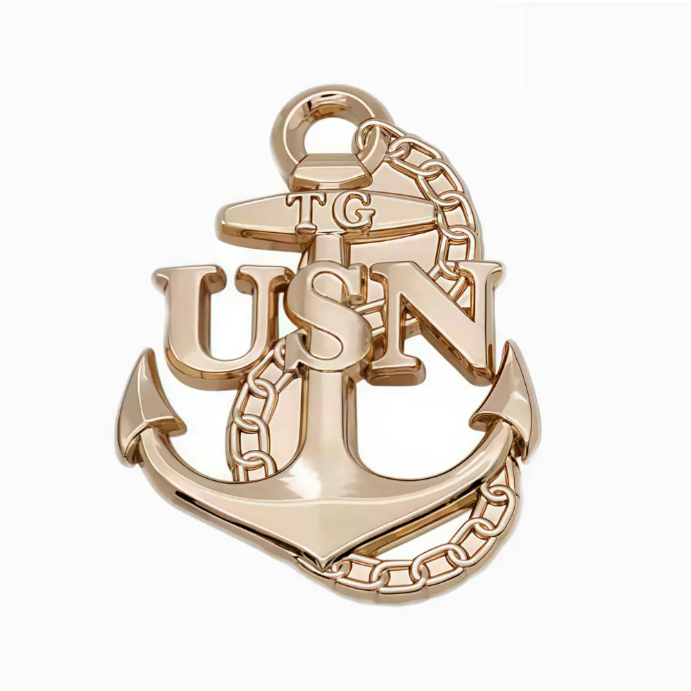 A premium custom die struck lapel pin made from zinc alloy, measuring 2" (5.1cm) with an estimated weight of 42g. Features sharp, detailed designs with raised and recessed areas for dimensional appeal. Produced in Bangladesh with shipping and tariffs included to USA.