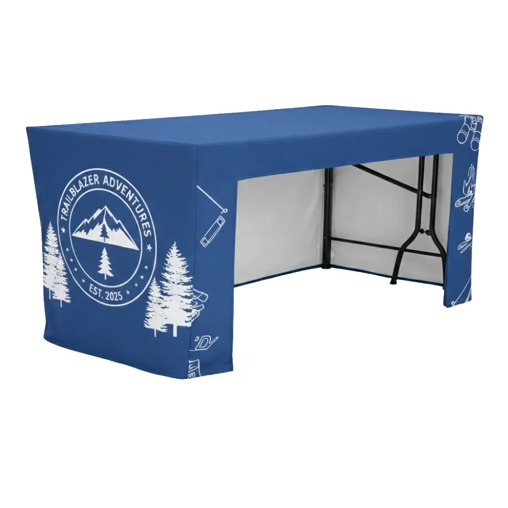 - Design Placement: Your artwork will cover the entire visible surface of the table cover for maximum brand impact.