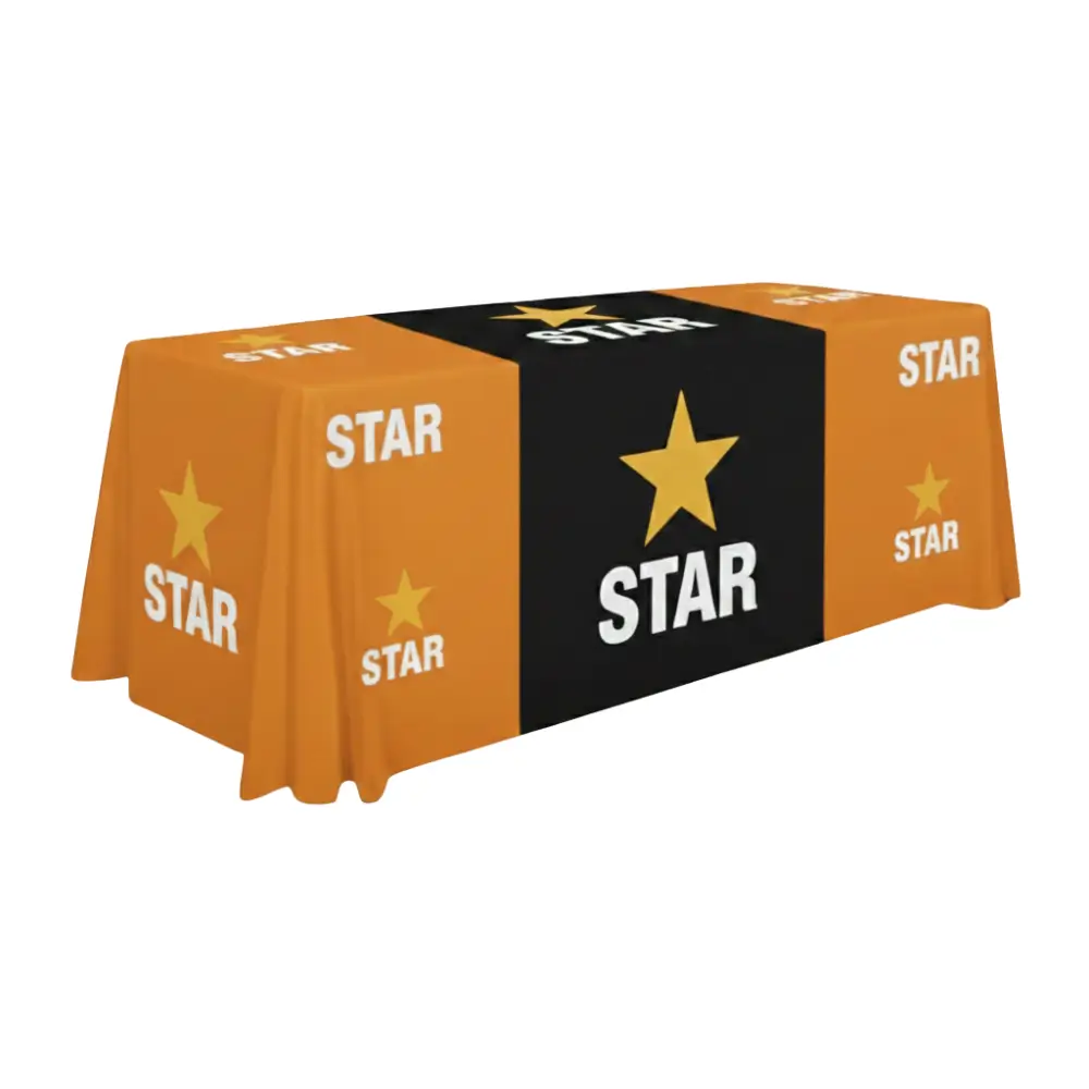 - Design Placement: Your artwork will cover the entire visible surface of the table cover for maximum brand impact.