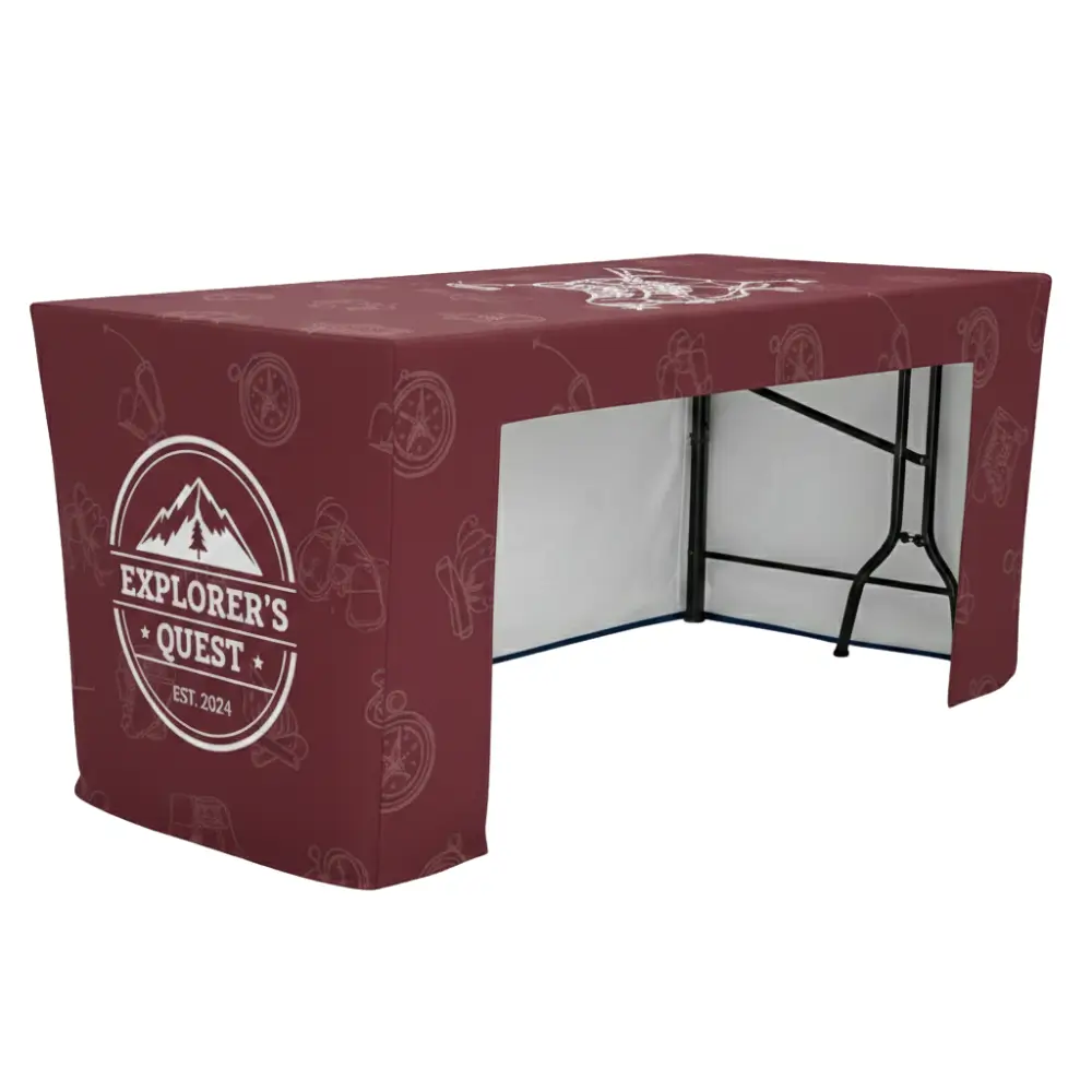 - Design Placement: Your artwork will cover the entire visible surface of the table cover for maximum brand impact.