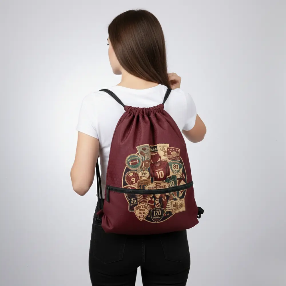 - Print Area: The entire surface of the football-shaped bag body. The drawstring straps are not included in the standard print area.
