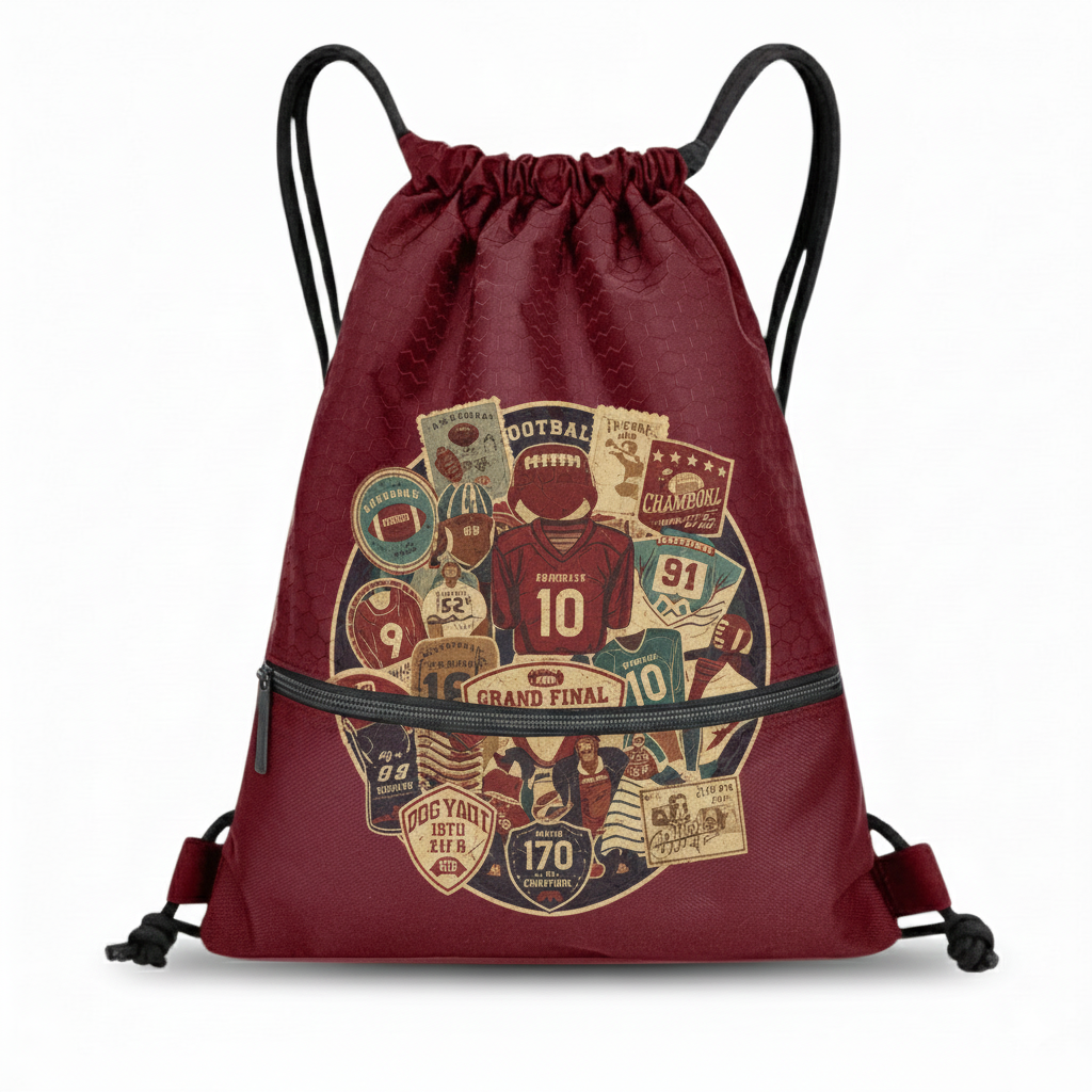 - Print Area: The entire surface of the football-shaped bag body. The drawstring straps are not included in the standard print area.