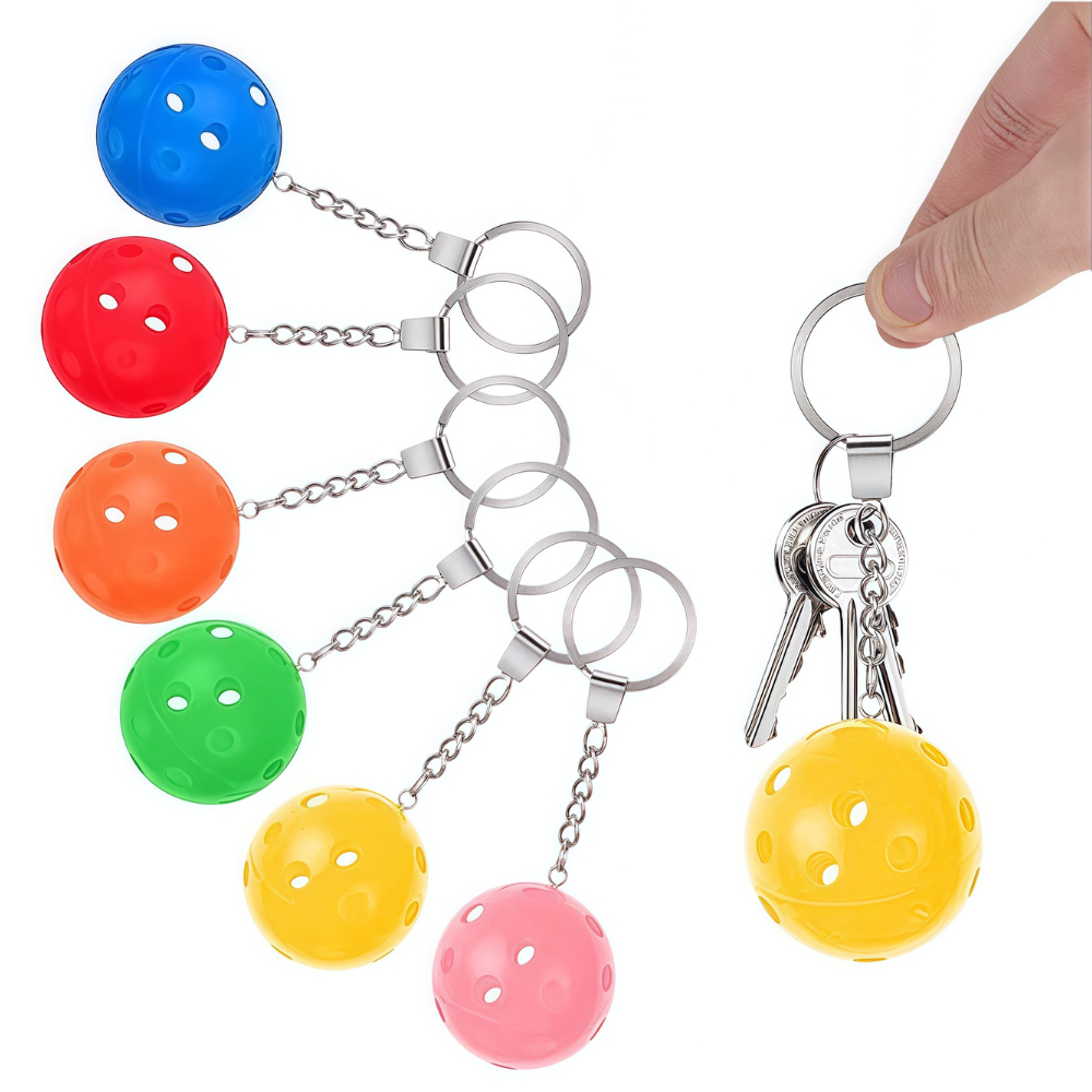 Show your pickleball pride everywhere you go with our Pickleball Keychain Pendant, a miniature 4.1cm TPE ball attached to a durable metal keyring. Perfect for decorating bags, backpacks, or hanging your keys, this charming accessory lets you carry your love for the sport wherever you travel. Available in four classic colors - white, blue, yellow, and red - with 1 color, 1 position logo customization available for personalization. Whether for personal use, club merchandise, tournament giveaways, or promotional items, these keychain pendants are a fun and affordable way to celebrate pickleball. Great for players of all ages, these mini pickleballs add a sporty touch to any set of keys or bag.