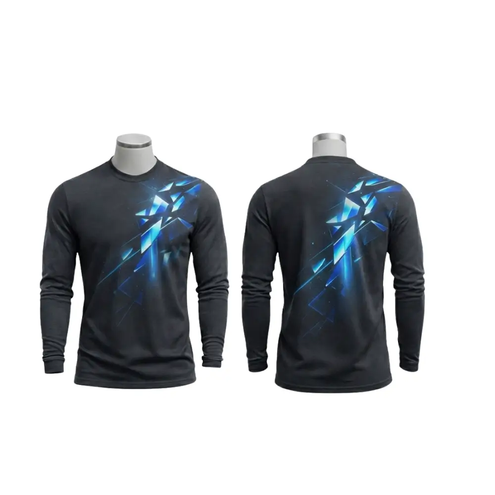 An economy series long sleeve t-shirt featuring full-color sublimation printing on soft 180gsm poly-cottony fabric. Offers the comfortable feel of cotton with long sleeve coverage, perfect for cooler weather, corporate wear, or sun protection.