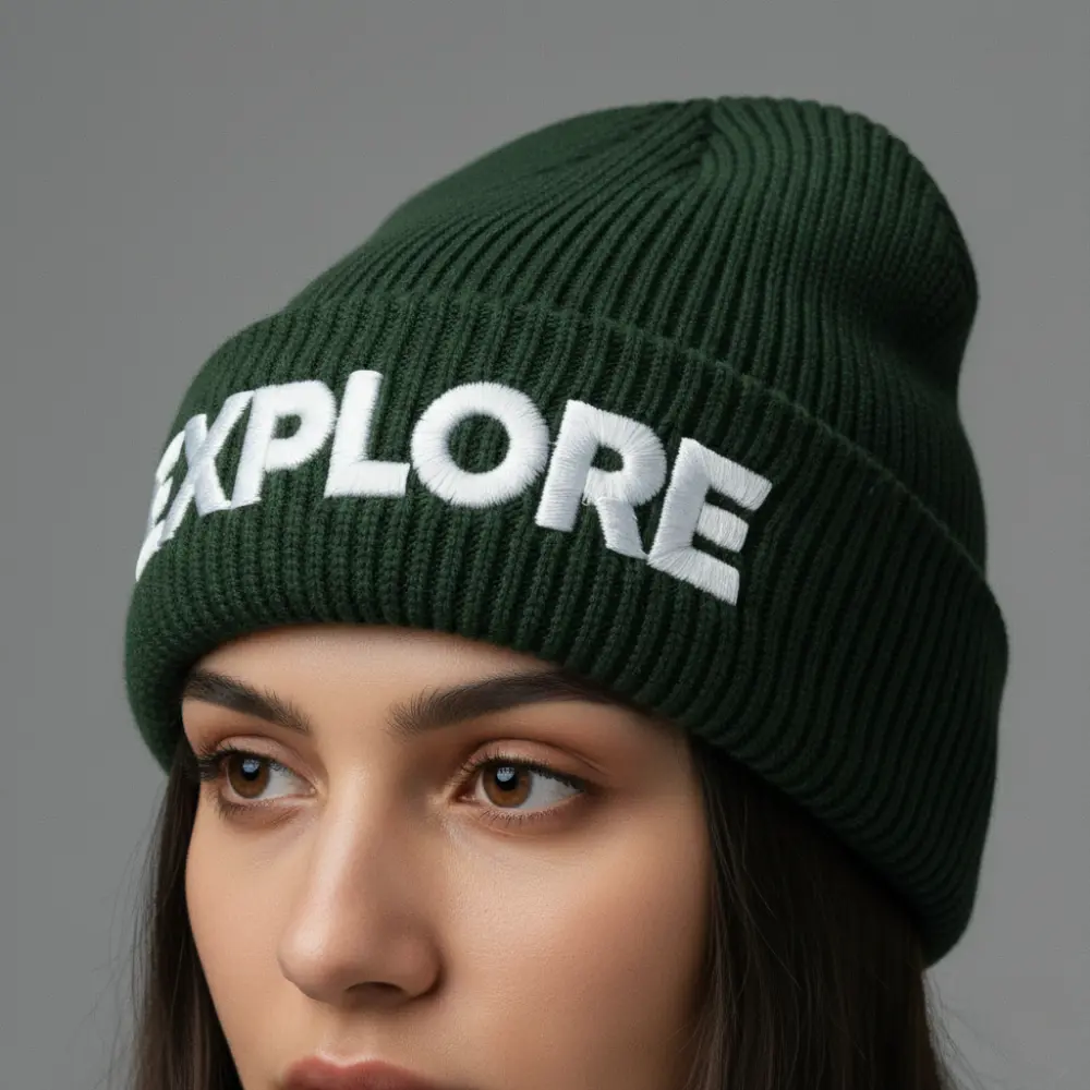 The primary aesthetic is the built-in knitted stripe. Additional branding is achieved through applied methods: Flat Embroidery, 3D Embroidery, Woven Labels/Patches, Dye Sub Patches, Soft PVC Patches, or Embroidery Patches.